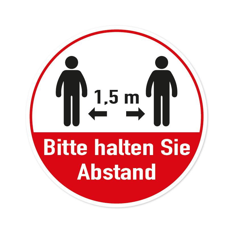 Bodenmarkierung - Bitte halten Sie Abstand - 1,5 Meter - Rund - Weiß/Rot - verschiedene Größen