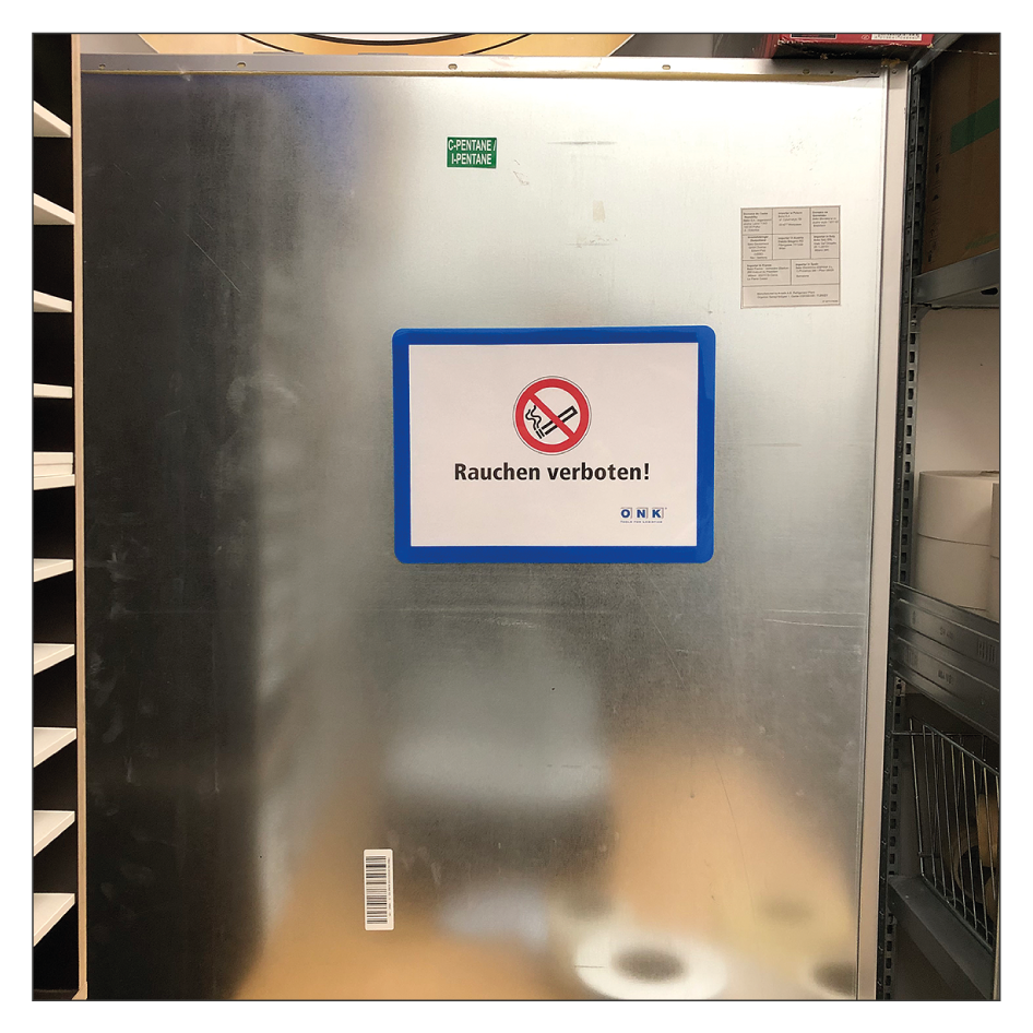 • Selbstklebende Kennzeichnungsrahmen haften am besten auf glatten Oberflächen. Bei unebenen oder rauen Flächen ist die Haftung nicht optimal bzw. nicht gegeben.
