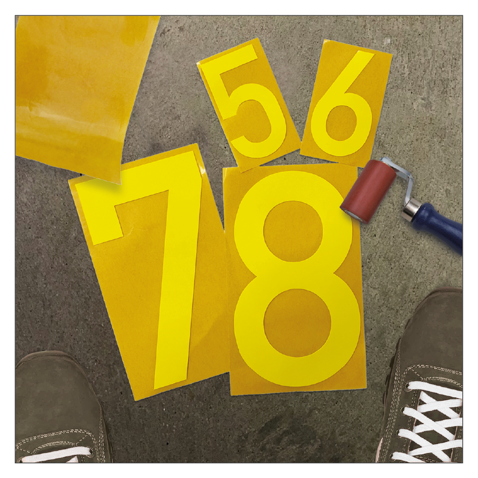 Selbstklebende Bodenmarkierung Ziffern Gelb