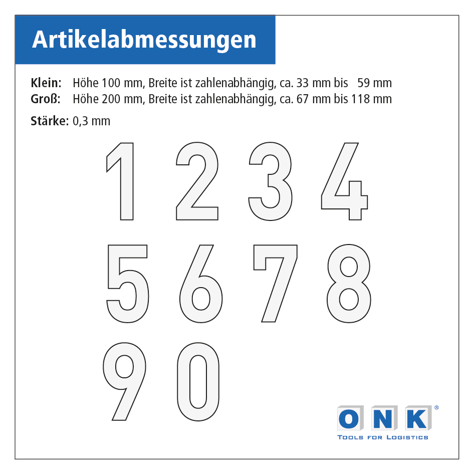 Kleine Variante: 100 mm hoch (Breite ist zahlenabhängig)