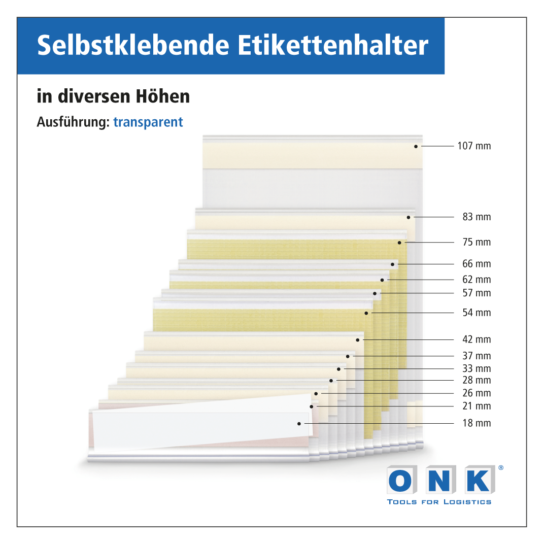 • Sorgen Sie vor der Befestigung unserer selbstklebenden Etikettenhalter für einen optimalen Untergrund. Die zu beklebende Oberfläche muß stets trocken sowie fett- und staubfrei sein, um eine dauerhafte Haftung sicherzustellen.