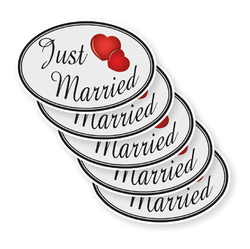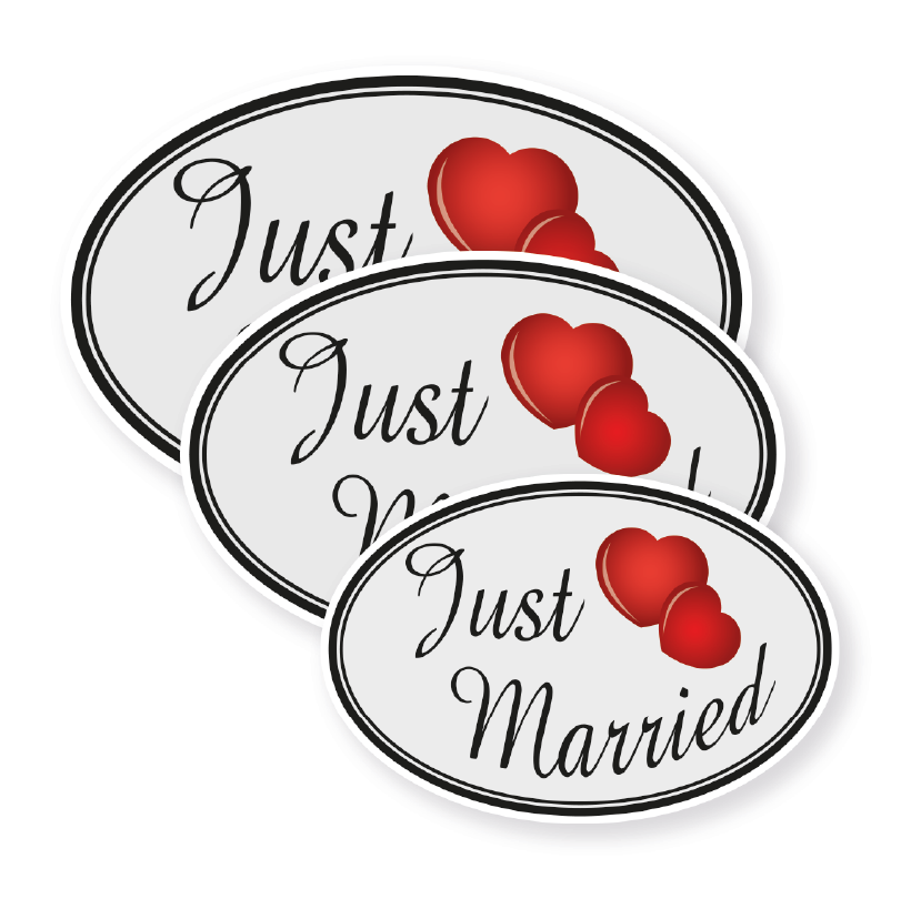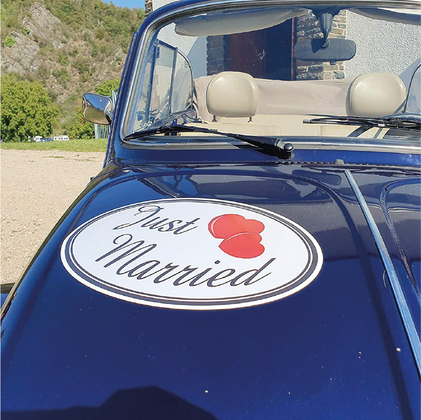 Magnetisch haftendes Formstück Just Married für den großen Tag. Haften Sie diese Magnetfolie oder mehrere auf Ihr Fahrzeug und zeigen Sie so allen, dass Sie sich "getraut" haben. Magnetische Just Married-Magnetfolien haften auf allen ferromagnetischen (eisenhaltigen) Oberflächen, sie lassen sich jederzeit anbringen und wieder rückstandslos entfernen, was eine flexible Nutzung ermöglicht. Unsere hochwertigen, in Deutschland gefertigten Magnetfolien sind langlebig und leicht zu reinigen.