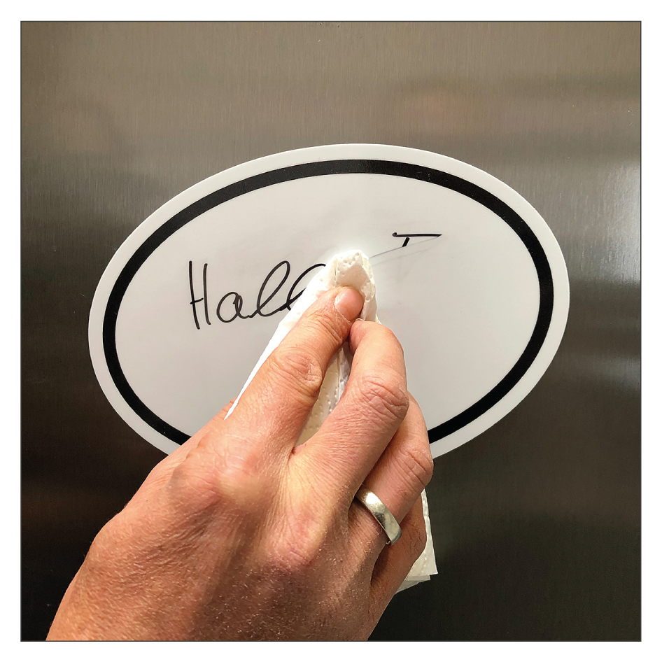 - Der beigelegte Marker ist ein wasserlöslicher (non-permanent), lichtechter Stift für den Einsatz im Innenbereich, die Beschriftung läßt sich problemlos mit einem feuchten Tuch abwischen. Für die Beschriftung der Sprechblasen sollten Sie ausschließlich diesen Stift oder einen mit identischen Merkmalen benutzen. Permanente, wasserfeste Stifte sind für die Beschriftung nicht geeignet.