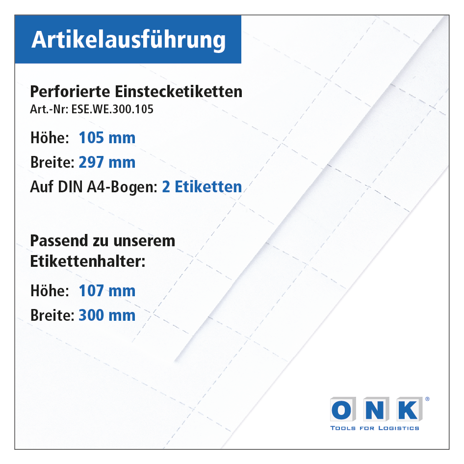 • die passenden Etikettenhalter zu unseren perforierten Einstecketiketten finden Sie in der Rubrik Etikettenhalter.