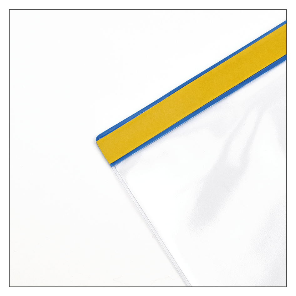 Sind Begleitpapiere oder Artikelbeschreibungen häufig Spritzwasser oder Regen ausgesetzt, so stellen diese Einstecktaschen die perfekte Lösung dar, um Ihre Unterlagen trocken zu halten. Aus einer weichen PVC-Folie gefertigt und mit einem bewußt unten angeordneten Druckverschluss ausgerüstet, schützen die Einstecktaschen alle Dokumente zuverlässig vor nassen Witterungseinflüssen. Die Inhalte werden einfach von unten in die Taschen geschoben und mit dem stabilen Druckverschluss versiegelt, der auch das Eindringen von Staub verhindert. Unsere Einstecktaschen sind zudem je nach Wahl rückseitig mit einem Magnetstreifen für eine flexible Befestigung an eisenhaltigen Metalloberflächen oder einem doppelseitigen Klebestreifen für eine permanente Haftung ausgerüstet. Aber auch für eine Befestigung an Gitterboxen mit Drähten oder Kabelbindern sind diese Einstecktaschen sehr gut geeignet. Hierzu müßen lediglich im oberen Teil der Taschen die vorperforierten Langschlitze herausgedrückt werden. Gerne werden diese Taschen auch als Schutzhülle für produktionsbegleitende Unterlagen genommen. Die darin liegenden Dokumente können Dank des einfachen, aber zuverlässigen Druckverschlusses jederzeit erweitert und gut geschützt weitergereicht werden.