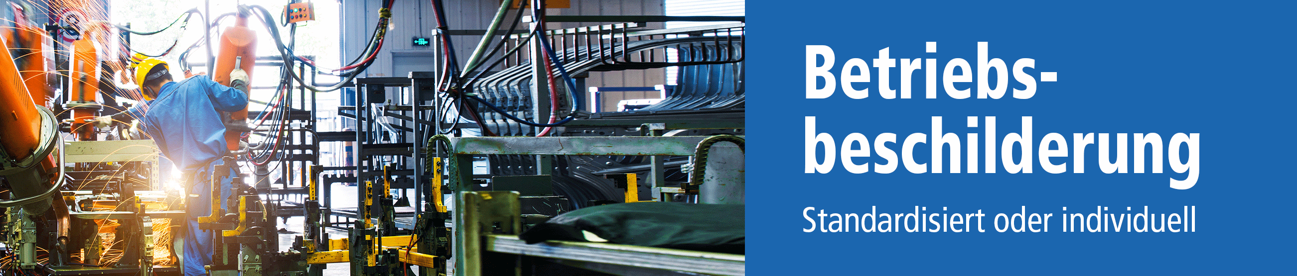 Die Beschilderung von Unternehmen ist vielfältig und aufgrund der verschiedenen Betriebsstrukturen kaum auf einen Nenner zu bringen. Dennoch gibt es Bereiche, die alle Unternehmen gleichermaßen betreffen. Hierzu zählen in erster Linie die Vorgaben der Arbeitschutzgesetze, für eine normgerechte Sicherheitskennzeichnung zu sorgen in Form geeigneter Verbots- , Gebots- und Warnschilder sowie Gefahrenstoffkennzeichnung, um Mitarbeiter und Besucher vor Gefahrenquellen zu warnen und Verletzungen zu vermeiden. Es gilt aber noch eine Reihe weiterer Bereiche zu berücksichtigen, die eine aussagekräftige Beschilderung erfordern. Hierzu zählen Parkräume, die mit geeigneten Parkplatzschildern ausgestattet werden müssen, bei größeren Betrieben auch mit Verkehrsschildern, um den Fahrzeugverkehr zielgerichtet und der StVO entsprechend zu leiten, z.B. zur Warenannahme, sowie barcodegestützte Etiketten, Schilder und Bodenmarkierungen in Lagerbereichen