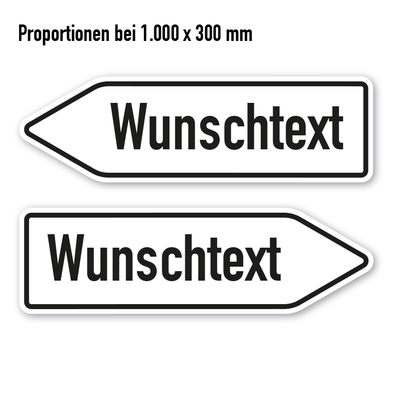 Pfeilschild / Pfeilwegweiser – individuelle Ausführung in weiß/schwarz