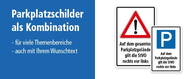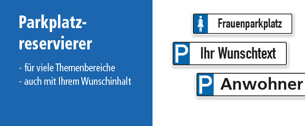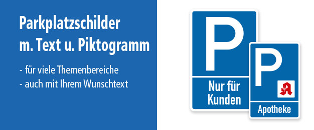 Für Betriebe führen wir eine Vielzahl an Parkplatzschildern für eine zielgerichtete und bedarfsbezogene Beschilderung. Die Anwendungspalette reicht von einer genormten oder praxisbewährten Parkraumkennzeichnung für Betriebsgelände, Supermärkte, Veranstaltungsorte und Messen sowie Tiefgaragen und Parkhäuser. Zum Einsatz kommen Halte- und Parkverbotszeichen nach StVO, die ein eingeschränktes Parken erlauben oder absolut verbieten, allgemeine Parkplatzschilder in Form von Parkplatzreservierern, z.B. für Besucher, Kunden oder die Geschäftsführung, aber auch spezielle Parkplatz-Kombinationsschilder mit blauem Parksymbol und darunter angeordneten Textinformationen. Diese Texte können Informationen zur Parkplatznutzung beinhalten, aber auch andere Inhalte, z.B. eine numerische bzw. alphanumerischen Kennzeichnung für einzelne Parkzonen oder größere Parkplatzbereiche. Pfeilschilder als unmissverständliche Wegweiser zu Parkplätzen und Parkräumen sowie Parkplatzschilder mit reinen Textinhalten runden die betriebliche Parkplatzbeschilderung ab.