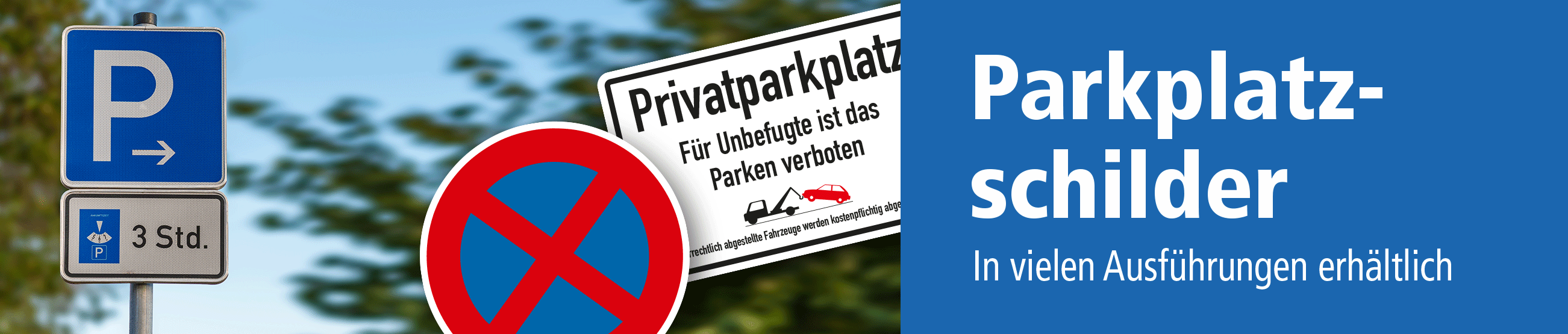 Parkplatzschilder stellen neben den Verkehrsschildern die wohl am meisten verbreitete Themenbeschilderung dar. Angesichts gesteigerter Mobilität der Bevölkerung und der daraus resultierenden Knappheit an Parkplätzen in den Ballungsräumen ist dies auch nicht verwunderlich. So bleibt es nicht aus, dass jeder scheinbar freie Raum als Parkplatz genutzt wird. Dies betrifft gleichermaßen bereits mit Halteverbotsschildern gekennzeichnete Räume als auch unbeschilderte Bereiche der Städte und Gemeinden wie auch Betriebe und private Liegenschaften. Verstöße gegen Parkverbote im öffentlichen Raum werden von zuständigen Stellen schnell mit Bußgeldern geahndet, gelegentlich auch mit dem Abschleppen der Fahrzeuge. Ganz anders sieht es bei privaten Liegenschaften und Betriebsgrundstücken aus. Hier liegt es an den Eigentümern, sich der Falschparker anzunehmen, was jedoch zeitraubend und nicht selten auch aufgrund fehlender Beschilderung und der damit verbundenen Rechtsgrundlage kompliziert ist. Abhilfe und Rechtssicherheit schafft hier nur eine aussagekräftige Parkplatzbeschilderung, die genau regelt, wer und wie lange man auf bestimmten Flächen parken darf, und auch, wo das Parken ausdrücklich verboten ist, weil die vermeintlich freien Stellen z.B. für die Zufahrt von Rettungskräften reserviert oder als Zufahrten zu Privatgrundstücken vorgesehen sind.
