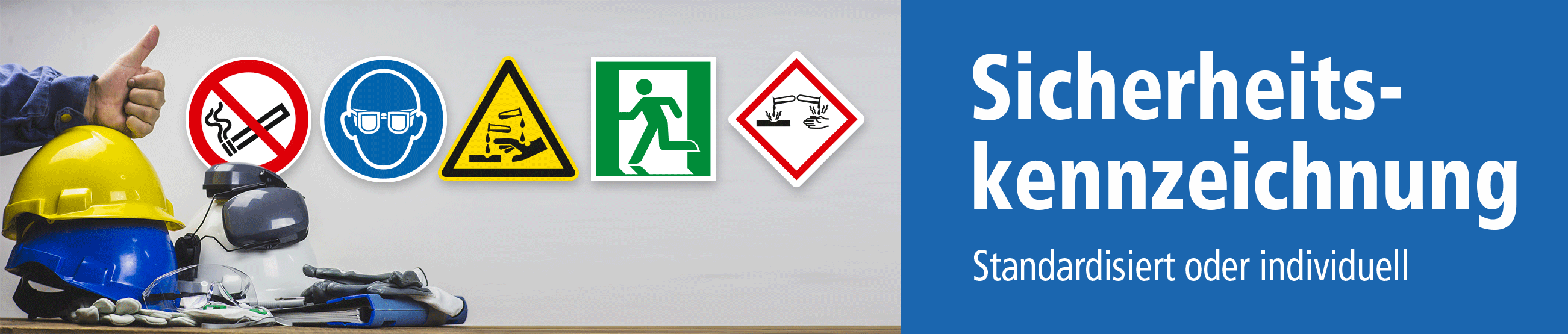 Hier greift die gesetzlich vorgeschriebene Sicherheitskennzeichnung – mit genormten Zeichen, Symbolen und Hinweisen nach ASR A 1.3, BGV A8 oder EN ISO 7010 und anderen sowie praxisbewährten Schildern, die in Zusammenarbeit mit Sicherheits- und Brandschutzbeauftragten an den jeweiligen Orten in geeigneten Ausführungen und Größen anzubringen sind.