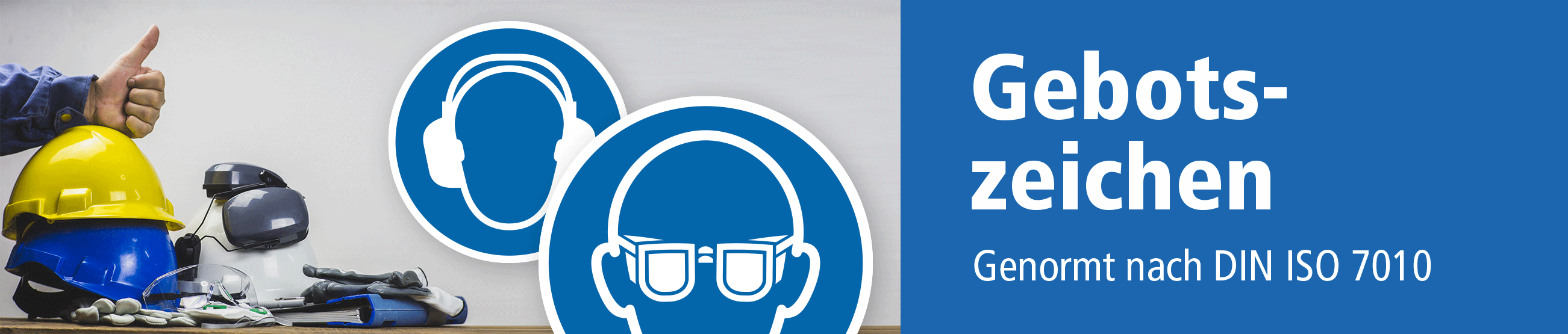 Gebotszeichen und Gebotsschilder nach ISO 7010, ASR 1.3 (2013) weisen Menschen an, bestimmte Verhaltensvorgaben zu befolgen bzw. Handlungen auszuführen, um sich oder andere nicht zu gefährden. Als Gebotszeichen werden blaue Hinweisschilder mit weißen Piktogrammen oder Zeichen bezeichnet, die die jeweiligen Anweisungen unmissverständlich symbolisieren, um die Sicherheit bei Arbeitsprozessen zu erhöhen und die Unversehrtheit bzw. Gesundheit der Mitarbeiter zu erhalten.