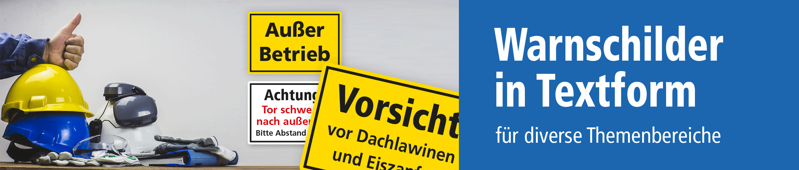 Wir führen in dieser Kategorie diverse Warnschilder als Textschilder in zahlreichen Größen für eine bedarfsgerechte Kennzeichnung. Sollten Sie spezielle Textschilder benötigen, die wir nicht in unserem Online-Shop führen, bitten wir um Nachricht. Wir fertigen Warnschilder mit Textinhalten auch nach Vorgabe. Gerne unterbreiten wir Ihnen unser Angebot.